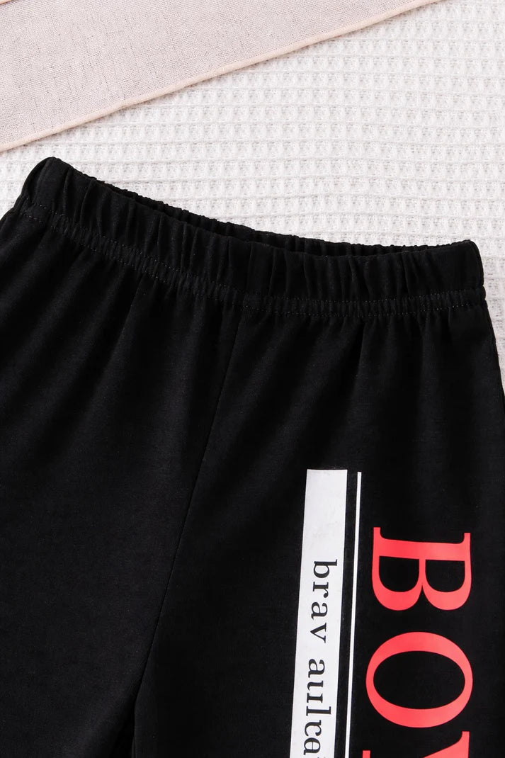 Black and red Boys brave and confident printed t shirt with printed pajama kids suit