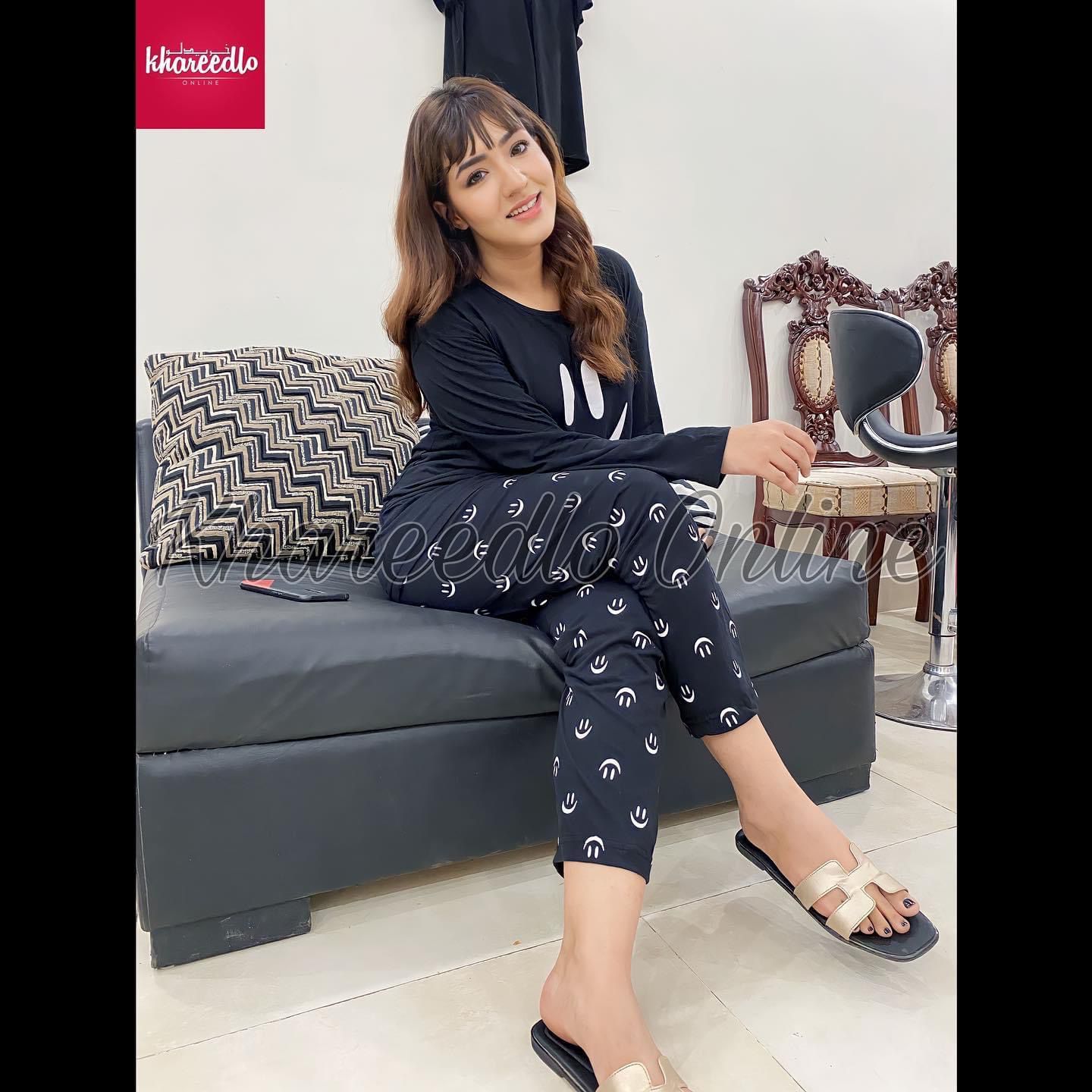 • Product Name : Black Smile With Smiley Trouser Full Sleeves Night Suit