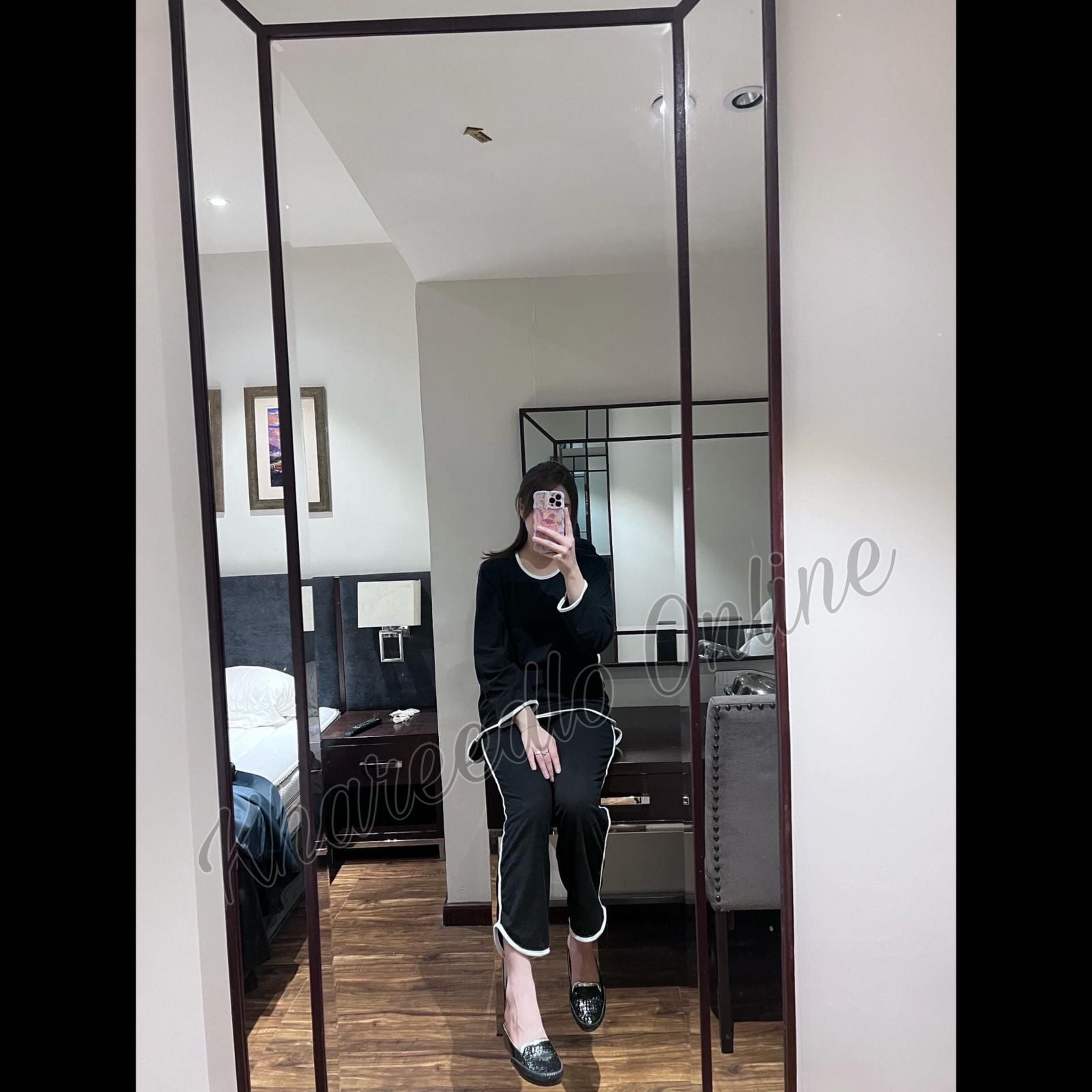 • Product Name : Black With White Piping Round Neck Full Sleeves Lounge Wear