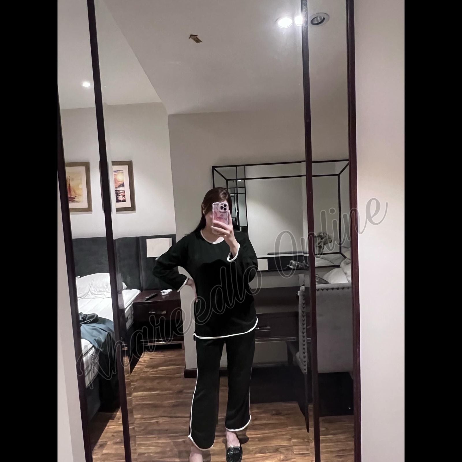 Black With White Piping Round Neck Full Sleeves Lounge Wear (KO-NS-366)
