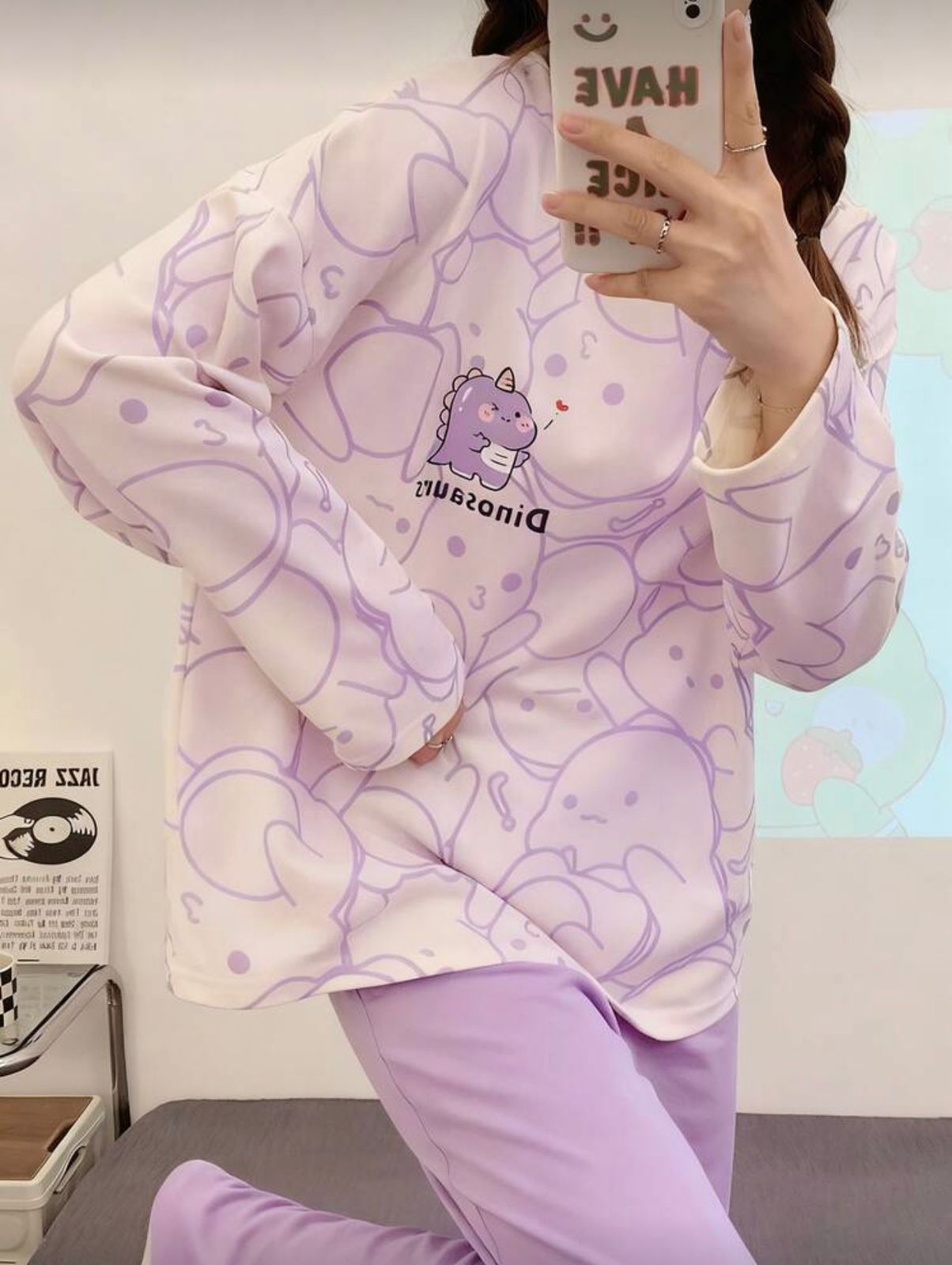 • Product Name : Lilac Cute Dinosaur Print Full sleeves Night Suit