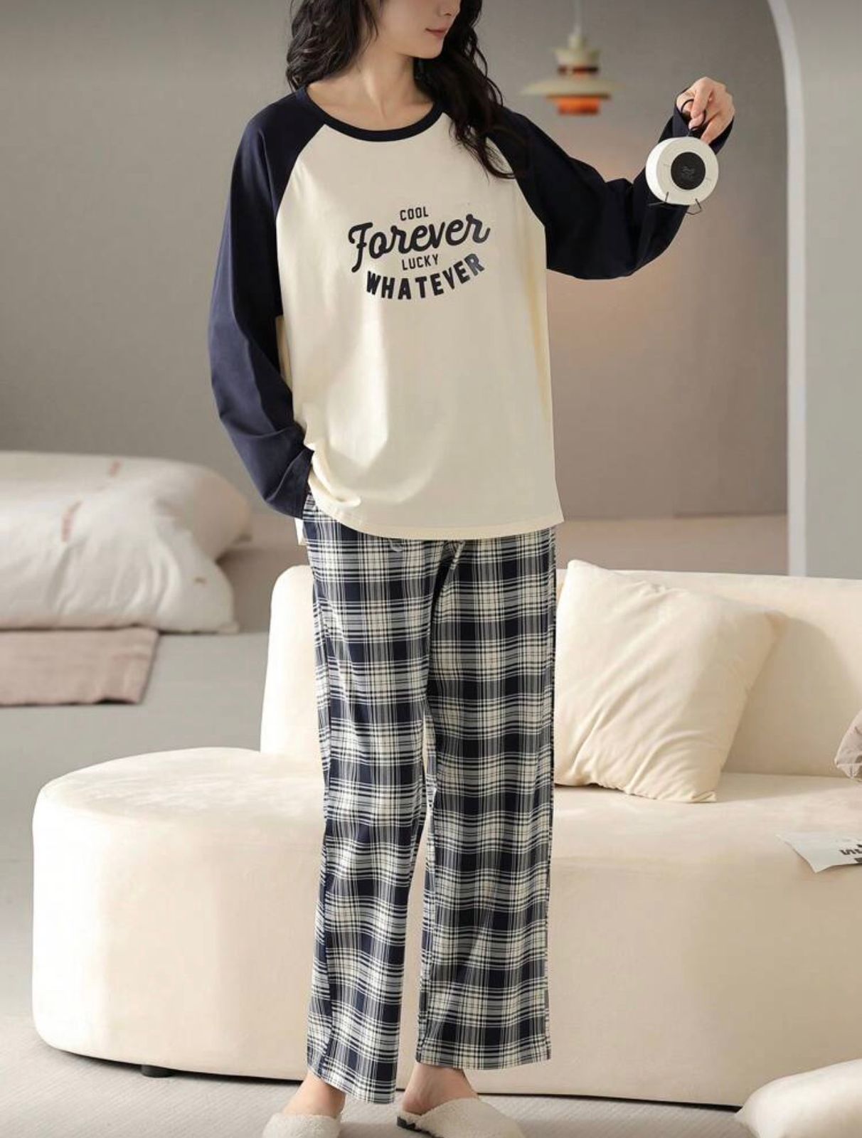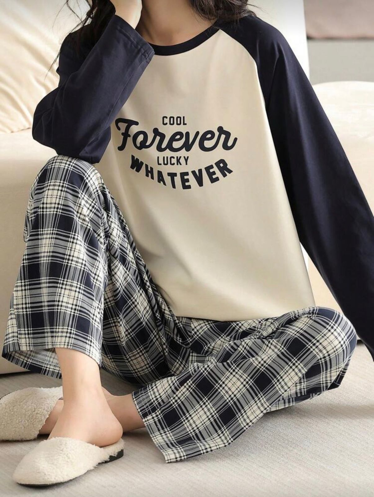 • Product Name : Off White Cool Forever Lucky Whatever Print Full Sleeves Night Suit