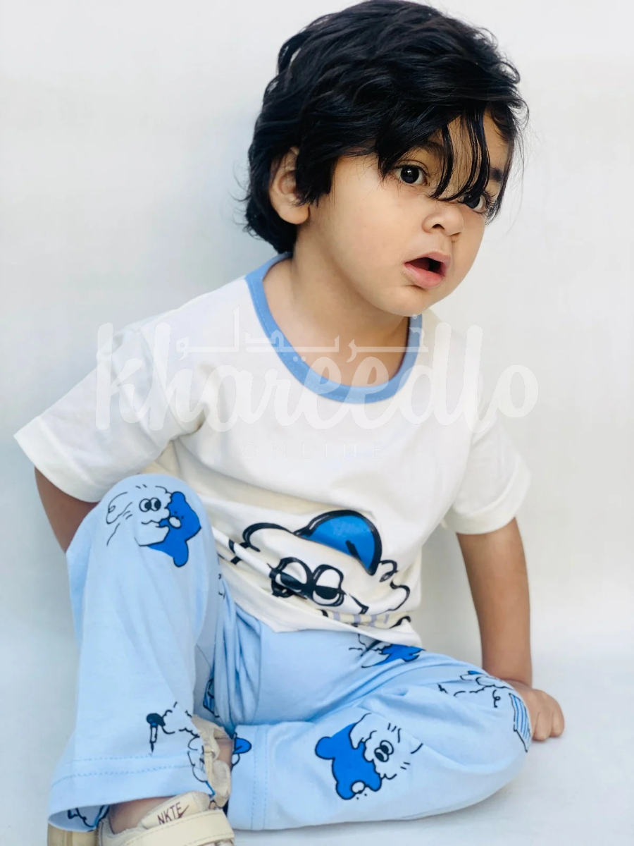 Off white sleepy puppy Printed Kids Night Suit
