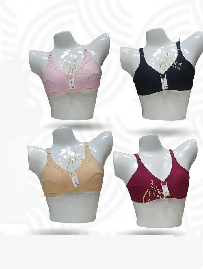 Roses luxury bra plain hosiery soft fabric 4 pcs set