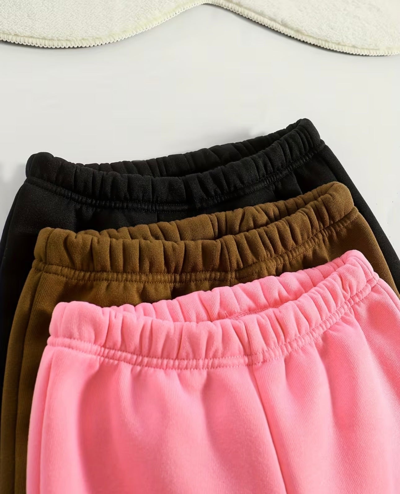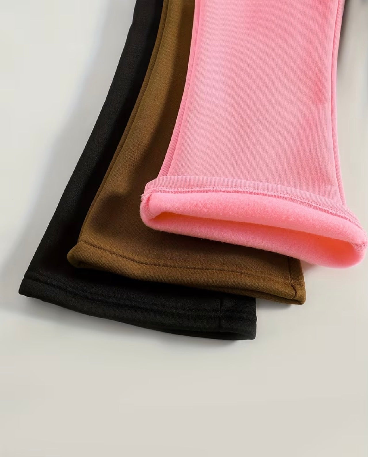 Pack of Three Multi colours Heart Printed Kids Fleece Trousers (Pink/Brown/Black)