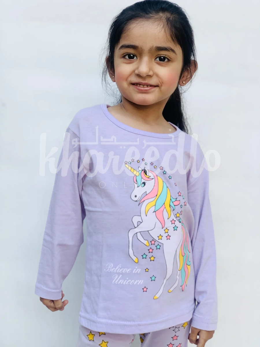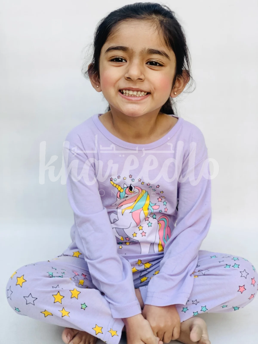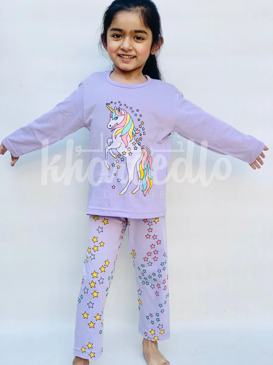Purple Unicorn Printed Kids Night Suit